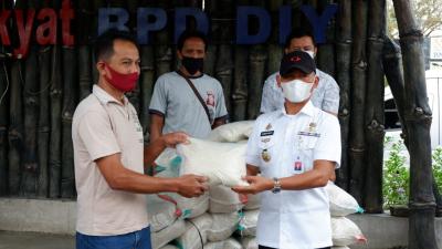 Gunungkidul – Ratusan pedagang di taman kuliner mendapatkan bantuan beras dari Dinas Perdagangan Kabupaten Gunungkidul.