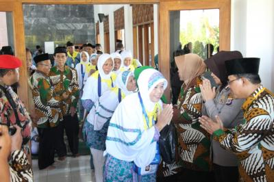 Bupati Gunungkidul Hj. Badingah, S.Sos, secara resmi melepas pemberangkatan jemaah haji Kabupaten Gunungkidul di komplek Masjid Al-Ikhlas, Wonosari (24/07).