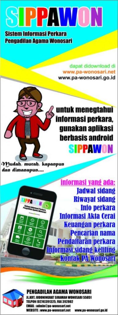 Di Pengadilan Agama Wonosari, telah ada pelayanan berbasis IT yang diberi nama ‘’SIPPAWONN’’ Sistem Informasi Perkara Pengadilan Agama Wonosari berbasis E-Android untuk pelayanan Publik.