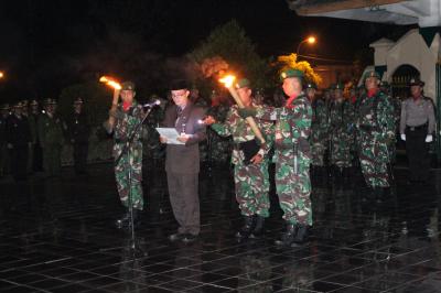 Apel kehormatan dan renungan suci dihadiri oleh Wakil Bupati Gunungkidul Dr.H. Immawan Wahyudi, S.H., M.H., Sekda Ir. Drajad Ruswandano, M.T., Dandim 0730/GK Letkol. Inf. Muh. Taufik Hanif, Y., S.Sos., Kapolres AKBP. Muhammad Arif Sugiharto, S.I.K., dan diikuti para pejabat pemerintah daerah, anggota DPRD, 1 Pleton Perwira TNI / Polri, 1 Pleton TNI Bersenjata dari Kodim 0730/GK , 1 Pleton Polri Bersenjata Polres Gunungkidul, 1 Pleton Satpol PP, Legiun Veteran Republik Indonesia (LVRI), Pramuka Sakawira Kartika Kodim 0730/GK.(tim_ikp*)