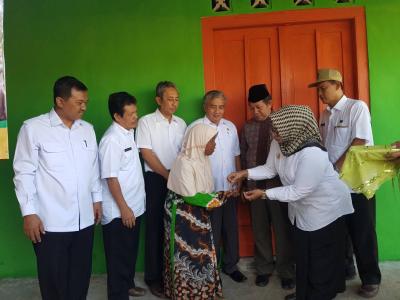 Gunungkidul- Rangkaian Hari Jadi Kabupaten Gunungkidul ke 186 tidak hanya merupakan kegiatan seremonial rutin saja. Tetapi dijadikan momentum penting bagi Badan Amil Zakat Nasional (Basnaz) Kabupaten Gunungkidul untuk melaksanakan kegiatan yang menyentuh langsung dan dapat dirasakan manfaatnya oleh masyarakat diantaranya bedah rumah milik Mbah Tugiyem penduduk RT 01/RW 35 Tegalmulyo Desa Kepek Wonosari. Penggunaan rumah tersebut secara resmi ditandai penyerahan kunci oleh Bupati Gunungkidul Hj.Badingah, Sos kepada Mbah Tugiyem disaksikan Kadis.PUPR Kab.Gunungkidul Ir. Edy Praptono, Ketua Baznas Kabupaten Gunungkidul Drs. Tsamin Fausi,M.Pd.I, dan Kades Kepek Bambang Setyawan,SE, Rabu 17/5 2017.[PIC1]