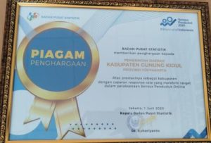 Partisipasi Masyarakat Tinggi, Kabupaten Gunungkidul mendapat Pigam Penghargaan dari BPS Republik Indonesia