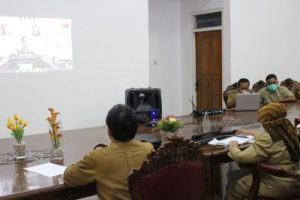 Bupati Gunungkidul Bersama Kepala Daerah se Jawa Tengah dan Daerah Istimewa Yogyakarta Video konfrens Kementerian Sosial