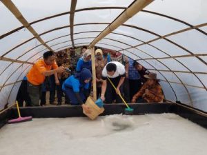 Gubernur DIY Sri Sultan Hamengku Buwono X Didampingi Bupati Gunungkidul Hj.Badingah Panen Raya Garam Kualitas SNI Milik Kelompok Tani.