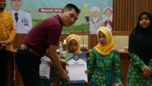 Bupati Sunaryanta Memyerahkan Hadiah Festival Anak Shaleh Indonesia (FASI) XII Tingkat Kabupaten Gunungkidul.
