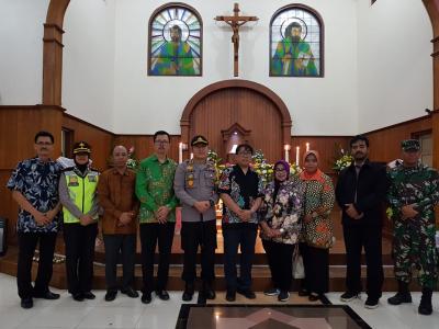 Gunungkidul – Bupati Gunungkidul Hj. Badingah, S.Sos., bersama anggota Forum Komunikasi Pimpinan Daerah (Forkopimda) serta sejumlah Kepala Organisasi Perangkat Daerah (OPD) terkait mengunjungi Gereja Santo Petrus dan Paulus Kelor (Karangmojo) disambut Romo Paroki FX. Cahyo Handoko, Pr dan Ketua Panitia Drg. Wisnu Wardhana beserta umatnya. Rombongan juga mengunjungi Gereja Santo Yusuf Bandung (Playen), Senin, (24/12), malam.