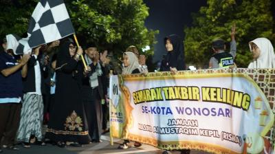 Masyarakat terlihat antusias menyaksikan konvoy kendaraan berhias dengan pengeras suara yang mengumandangkan takbir tersebut. Menurut Laporan Panitia ada sekitar 17 Peserta dari jamaah se Kota Wonosari.