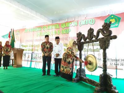Gunungkidul – Rabu, (12/06) Bupati Gunungkidul Hj. Badingah, S.Sos membuka secara resmi Musabaqah Tilawatil Quran (MTQ) Pelajar SD dan SMP Tingkat Kabupaten Gunungkidul, di SMPN 1 Wonosari.