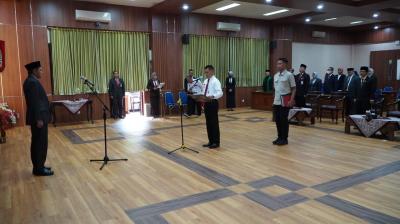 Pengambilan Sumpah Jabatan dan Pelantikan dilakukan di Ruang Handayani Kantor Sekretariat Daerah Kabupaten Gunungkidul, Rabu (3/5) dihadiri oleh Wakil DPRD Kab. Gunungkidul Heri Nugroho, S.S, Sekretaris daerah Sri Suhartanta, Direktur Utama PT. BPR BDG Dra. Rini Widiyanti, serta dari Pejabat daerah terkait.