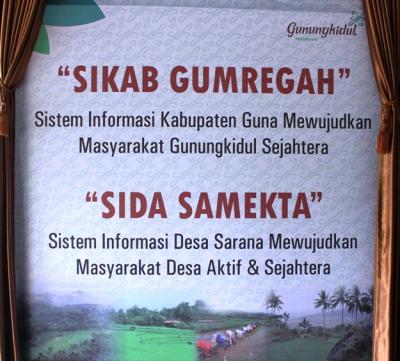 Selain memberikan nama Sistem Informasi Desa (SID) dengan nama “SIDA SAMEKTA”, Bupati juga memberikan nama pada Sistem Informasi Kabupaten (SIK) dengan nama “SIKAB GUMREGAH” yaitu singkatan dari “Sistem Informasi Kabupaten Guna Mewujudkan Masyarakat Gunungkidul Sejahtera”.