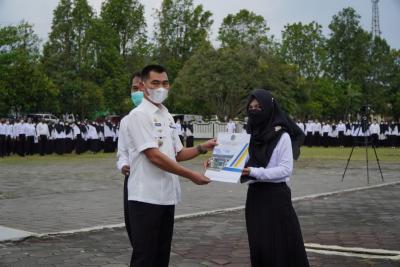 Gunungkidul- Sebanyak 907 P3K (Pegawai Pemerintahan dengan Perjanjan Kerja) formasi guru hasil rekruitmen Tahun 2021 Kabupaten Gunungkidul telah menerima Surat Keputusan (SK) yang di serahkan langsung oleh Bupati Sunaryanta dalam apel yang di laksanakan di Alun-alun Wonosari, Rabu(27/4) sore.