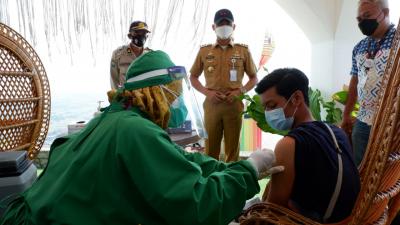 Bupati H. Sunaryanta sangat mengapresiasi dilaksanakan vaksin ini, terlebih untuk sektor pariwisata, hal ini harus terus didorong sebagai bagian untuk mensukseskan program vaksinasi nasional dengan target 70%.