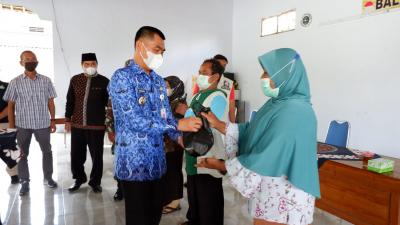 Secara simbolis bupati menyerahkan 3 paket sembako kepada warga masyarakat.