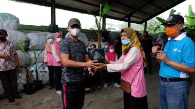Pada kesempatan tersebut bupati H.Sunaryanta secara sombolis menyerahkan bibit pisang kepada kelompok swadaya masyarakat sejumlah 150 bibit dari berbagai jenis.