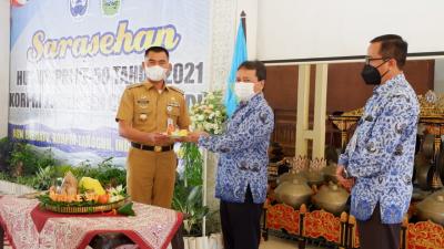 Bupati secara singkat dalam amanatnya menyampaikan bahwa keberadaan dan eksistensi korpri dari dulu sudah mengalami perubahan sejak lahir 29 November yang berkiprah di pemerintahan, BUMN, BUMD.