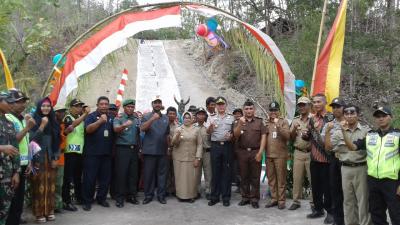 Upacara penutupan kegiatan TMMD Sengkuyung ke 103 Tahap III kali ini juga dihadiri Bupati Gunungkidul, Hj. Badingah, S.Sos., Forkopimda, tokoh masyarakat dan tamu undangan lainnya. (*tim_IKP)