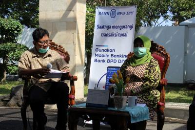Gunungkidul – Bupati Gunungkidul Hj. Badingah, S.Sos menjadi pembicara temuwicara daring yang diselenggarakan Harian Jogja di Rumah Dinas Bupati, Kamis (10/9) di dampingi Pemimpin Cabang Bank BPD DIY Cabang Wonosari Plati Sulistiyanti.