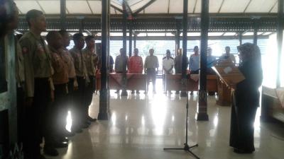 Gunungkidul – Sebanyak 12 orang pengurus forum koordinasi Taruna Siaga Bencana (Tagana) Kabupaten Gunungkidul masa bakti 2018-2021 dikukuhkan Bupati, Hj. Badingah, S.Sos.,di Bangsal Sewoko Projo, Wonosari, Selasa sore (12/06).