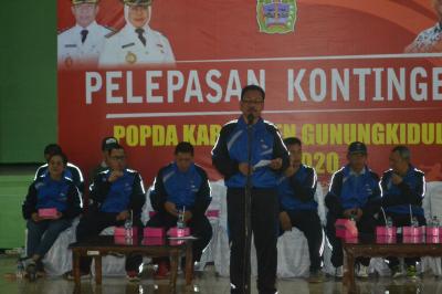 Bupati Gunungkidul dalam sambutanya yang dibacakan Asisten I Drs. Sigit Purwanto, MM., mengucapkan selamat dan mengapresiasi kepada seluruh atlit pelajar dan pelatih yang akan bertanding di POPDA tahun 2020. Dengan semangat dan persiapan bisa menunjukan prestasi yang akan membawa nama baik diri pribadi dan secara luas Gunungkidul dalam ajang PODAP tahun 2020. Dengan kemampuan yang optimal yang kita tunjukan akan membawa nama baik Gunungkidul