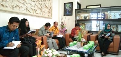 Gunungkidul – Bupati Hj. Badingah, S.Sos., didampingi, Sekretaris Daerah, Ir. Drajad Ruswandono, M.T., Asisten III Bidang Administrasi Umum, Ir. Anik Indarwati, M.P., Kepala Inspektorat, Drs. Sujarwo, M.Si., dan Kepala DP3AKBPMD, menerima kunjungan kerja BPKP Perwakilan DIY, Slamet Tulus Wahyana, di Ruang Rapat Bupati, Jumat, (01/03).