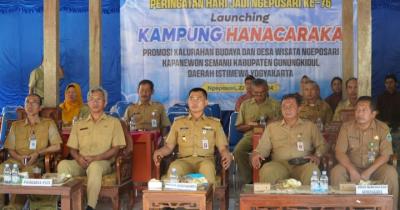 Sementara Lurah Ngeposari Ciptadi mengatakan, Kampung Hanacaraka dibangun warga sejak 4 tahun lalu. Konsep kampung ini mengangkat lima unsur kebudayaan Daerah Istimewa Yogyakarta.
