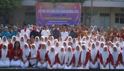 Gunungkidul – Festival dan Lomba Seni Siswa Nasional 2024 untuk jenjang SMP di Kabupaten Gunungkidul resmi dimulai dengan tema “Merdeka Prestasi Talenta Seni Menginspirasi”. Acara di buka langsung oleh Bupati Gunungkidul Sunaryanta di SMP N 1 Wonosari, Jumat (31/5/2024).