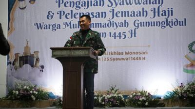 Gunungkidul – Bupati Gunungkidul Sunaryanta menghadiri pengajian syawalan dan pelepasan jemaah haji warga Muhammadiyah. Kegiatan yang dihadiri 5000 jemaah ini digelar di Masjid Al-Ikhlas Wonosari, Sabtu malam (4/5/2024).