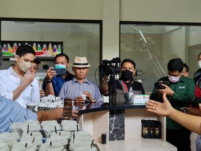 Dalam pertemuan tersebut juga ada sesi dialog dengan kelompok tani dan pokdarwis rombongan juga berkesempatan mengunjungi ruang produksi pengolahan coklat di lokasi TTP Nglanggeran serta mencicipi produk-produk olahannya.
