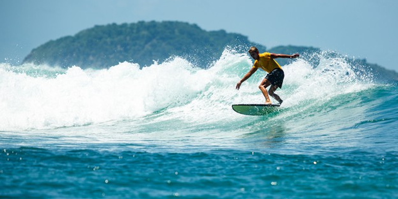 English: Gunungkidul is known as an area that has many beautiful panoramic beaches and has its own characteristics. Even one of the beaches can be used as the best surfing spot. The beach is called Wediombo Beach which is located in Jepitu Village, Girisubo Subdistrict, Gunungkidul Regency. It is a beach with the right wave character for surfing. The shape of the beach that resembles a bay makes this beach has the type of waves that tend to be stable. Many wave hunters (surfer) from various regions try to surf at Wediombo Beach. Even tourists who visit can try the sensation of surfing and will be guided by local surfers. Besides surfing, here you can also enjoy the beautiful sunset.