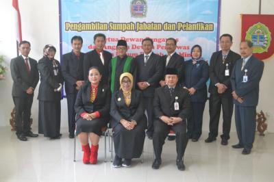 Gunungkidul-Bertempat di Aula Rumah Dinas Bupati, Hj. Badingah, S.Sos mengambil sumpah jabatan dan pelantikan Ketua Dewan Pengawas dan Anggota Dewan Pengawas Perusahaan Umum Daerah Air Minum (PDAM) Tirta Handayani Ir. Edy Praptono, M.Si. Kamis (19/03).[PIC5]
