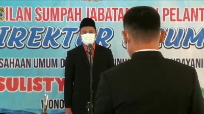 Pengambilan sumpah jabatan dan pelantikan direktur umum di tandai pembacaan sumpah janji dan penandatanganan berita acara.