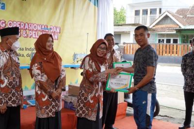 Bupati pun juga menyerahkan secara langsung bantuan hibah kepada penerima, untuk bantuan yang diserahkan ada uang operasional dan alat praktek untuk kursus.