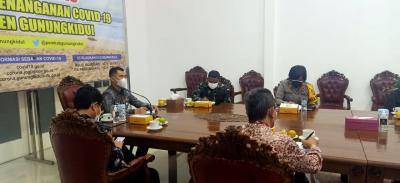 Hadir mendampingi bupati dalam vidkon ini Wakil Bupati Heri Susanto, S.Kom, M.Si, Wakapolres, Dandim 0730/GK, Kajari, Asisten I Drs. Sigit Purwanta, Kepala Dinas Kesehatan dr.Dewi Irawati, Kepala Dinas Kominfo Kelik Yuniantoro, S.Sos, MM, Dinas Perhubungan, Dinas Sosial, serta Pejabat pemkab.