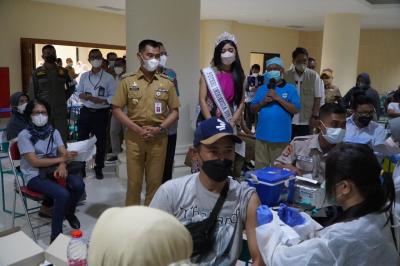 Finalis Putri Indonesia Erina Sofia Sudono dari Yogyakarta pun hadir bersama Bupati untuk menyaksikan pelaksanaan vaksinasi boster.