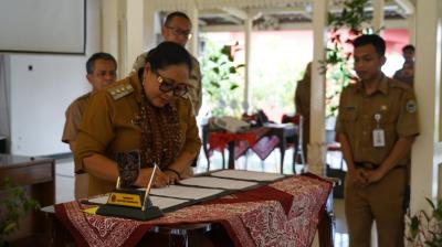 Bupati Endah menambahkan bahwa persoalan sampah menjadi perhatian utama di Daerah Istimewa Yogyakarta, bahkan berita-berita akhir-akhir ini menyebutkan adanya status darurat sampah di Yogyakarta.