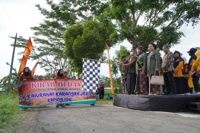 Seusai memberikam sambutan, Bupati pun melepas peserta kirab secara simbolis dengan mengibarkan bendera start, untuk kirab sendiri diikuti oleh 7 Padukuhan yang menampilkan berbagai kesenian.