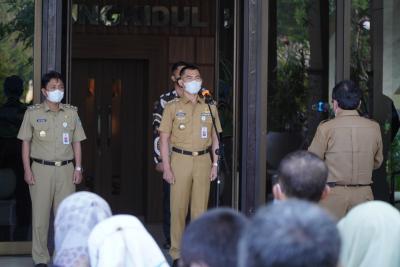 Seusai apel, Bupati, Wakil Bupati beserta jajaran pegawai lingkungkan Kantor Sekda Kab. Gunungkidul mengikuti Halal Bihalal dan ramah tamah.