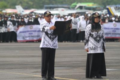 Gunungkidul – Memperingati Hari Guru Nasional yang ke – 77 Tahun 2022 Pemerintah Daerah Kabupaten Gunungkidul menggelar upacara di Lanud Gading Playen, pada Jumat Pagi, (25/11).