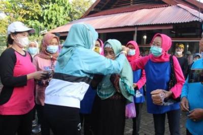 Gunungkidul – Ketua penggerak PKK Kabupaten Gunungkidul menyapa warga masyarakat Kalurahan Gari Wonosari, Minggu pagi (4/4).