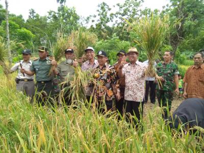 Gunungkidul – Wakil Bupati Gunungkidul, Dr. H. Immawan Wahyudi M.H., menghadiri pelaksanaan panen raya padi di Dusun, Piji dan Ngrombo 1, Desa Balong, Kecamatan Girisubo, didampingi Dandin 0730/GK, Letkol. Inf. Taufik Hanif Yassin dan Kepala Dinas Pertanian, Ir Bambang Wisnu Broto, pada Kamis (04/01).