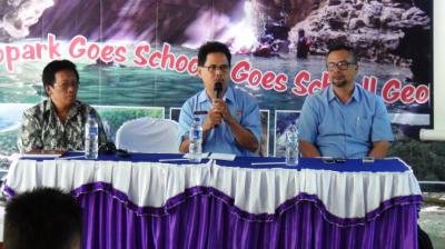 Gunungkidul – Demikian salah satu hal yang disampaikan oleh Hari Sukmono Kabid Pengembangan Produk Wisata Disbudpar Kabupaten Gunungkidul pada acara sosialisasi Gunung Sewu UNESCO Global Geopark putaran kedua yang dilaksanakan pada hari Rabu tanggal 24 Agustus 2016 di Balai Pertemuan Goa Pindul, Bejiharjo, Karangmojo dengan peserta terdiri dari pelajar dan guru pembimbing geografi dari sekolah yang berada di wilayah Kecamatan Karangmojo serta perwakilan pokdarwis yang ada di Karangmojo. Selain nara sumber dari Badan Geologi Kementerian ESDM RI juga ada nara sumber Hari Sukmono, ST dari Dinas Kebudayaan dan Kepariwisataan Kabupaten Gunungkidul.