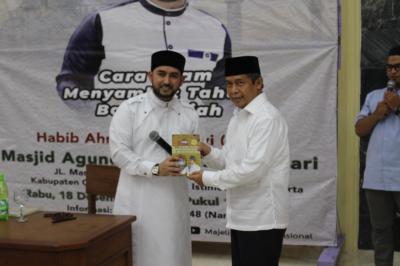 “sehingga kemanfaatan hidup ini bisa dirasakan bagi semua saudara, semua umat”Pada akhir tausiahnya ustad Al Habsy mengajak untuk berdonasi membantu umat muslim di Palestina dengan melelang beberapa buku karangannya, Wakil Bupati mengawali lelang buku tersebut dan diikuti oleh puluhan jamaah lainya hingga terkumpul donasi mencapai tiga puluhan juta rupiah lebih.