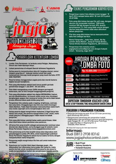 - Pengiriman foto melalui email : jogjaphotocontest@gmail.com dengan Subyek email : “Amazing Jogja 2016”