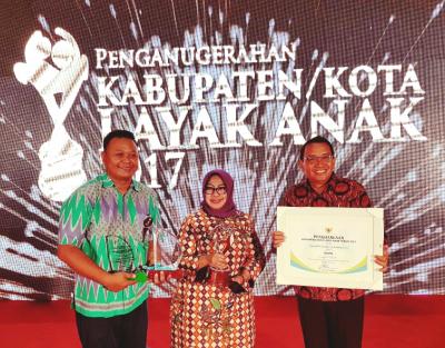 Penghargaan diserahkan langsung oleh Menteri Pemberdayaan Perempuan dan Perlindungan Anak/PPPA Republik Indonesia Yohana Yembise kepada Bupati Hj. Badingah, S.Sos., di Hotel Swiss-Belinn Pekanbaru, Riau, Sabtu (22/7) malam, pada rangkaian acara peringatan Hari Anak Nasional Tahun 2017.[PIC1]