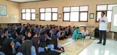 Sosialisasi dengan narasumber utama Kepala Dinas Kominfo, Kelik Yuniantoro,S.Sos.,MM., didampingi Kepala Bidang IKP, Supriyanto,SE.,MT. menyasar pada siswa kelas IX.
