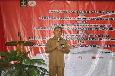 Gunungkidul – Wakil Bupati Dr. Immawan Wahyudi,MH menghadiri Deklarasi Janji Kinerja tahun 2020 dalam rangka pelaksanaan Coorporate University jajaran Rumah Tahanan kelas II B Wonosari di Gedung Aula Rumah Tahanan Gunungkidul,Selasa 21/1.[PIC2]