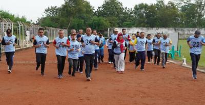 Bertempat di Stadion Gelora Handayani, kepala kepala OPD ini melakukan aktifitas fisik berupa lari memutari lapangan, sit-up, push up hingga lari multistage.
