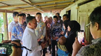 “Kita punya program gerakan orang tua asuh cegah stunting, disitu kita siapkan siapa anak asuhnya siapa orang tua asuhnya dan hari ini kita pastikan ada bener gak bahwa anak yang didata itu bener KRS Keluarga Resiko Stunting enggak, ternyata betul dan syaratnya terpenuhi,” kata Menteri Wihaji disela kunjungan.