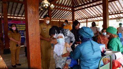 Gunungkidul – Meski capaian vaksin telah mencapai 70 persen lebih, Bupati H.Sunaryanta didampingi Ketua TP.PKK Hj.Diah Sunaryanta melakukan kunjungan Vaksinasi warga masyarakat di dua lokasi Tileng , Girisubo dan Sidoharjo Tepus, Senin (1/11).