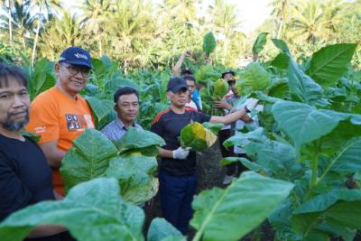 Selain mengikuti panen dengan petani, bupati juga melihat langsung proses pengolahan tembakau dari pemotongan, pengeringan hingga pengepakan sebelum dijual.
